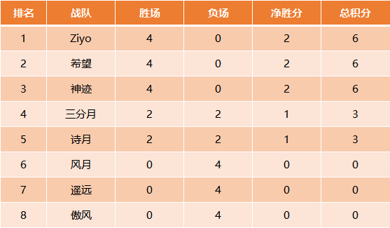 2019MPL夏季常规赛首周,八支职业战队均已登场亮相。Ziyo、希望、三分月、神迹四支战队同以2:0的比分击败对手,拿下夏季赛首战开门红!经过4个比赛日的对决,积分榜上明显划分成三个梯队,第一梯队为:Ziyo、希望、神迹三队均收获4小局连胜,总积6分并列战队积分榜第一席位;第二梯队为:三分月和诗月各胜2局负2局,以总3分排名第二位;第三梯队为遥远、三分月、傲风开赛连负,积分榜垫底。仅仅是赛季初战,各队已经卯足干劲,紧抓积分优势,为晋级季后赛做好铺垫。