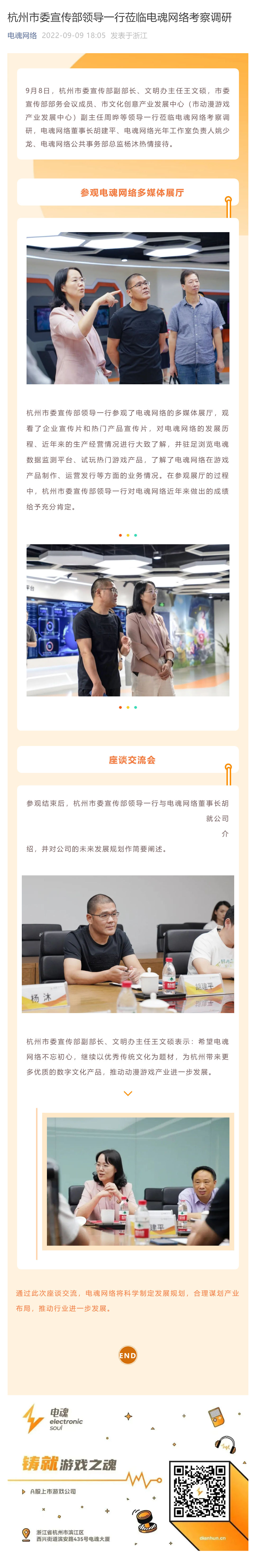 杭州市委宣传部领导一行莅临电魂网络考察调研
