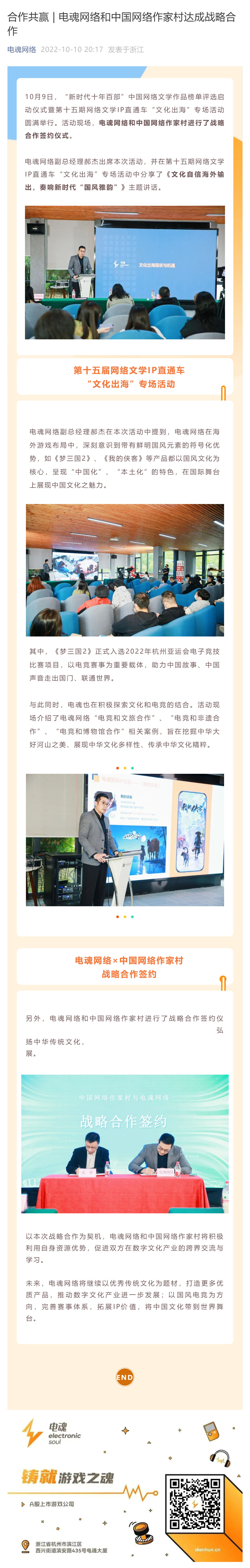 合作共赢 | 电魂网络和中国网络作家村达成战略合作